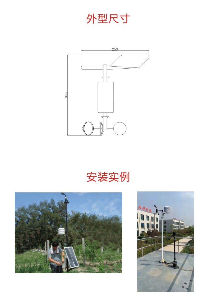 ·測量范圍:風速:0~70m/s ;風向:0~360°