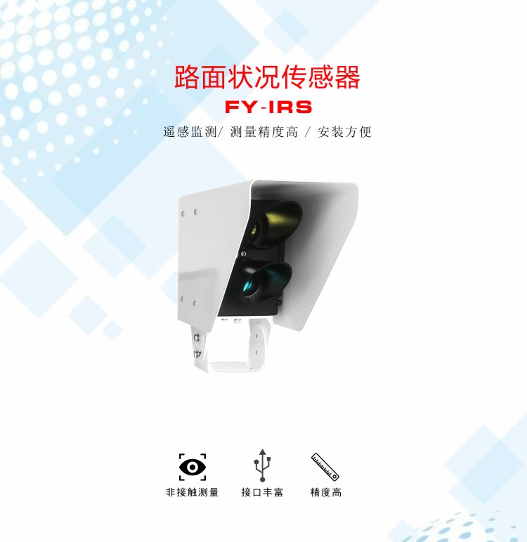 FY-IRS路面狀況傳感器是一款非接觸式路面狀態(tài)檢測器,采用紅外遙感測量技術(shù),既可以安裝在現(xiàn)有的氣象站上,也可以安裝在路面視野無遮擋的其他建筑物上,避免了對道路的破壞。多光譜測量技術(shù)可準(zhǔn)確檢測出道路表面結(jié)冰、積雪和積水的厚度。本傳感器可為道路管理部門提供準(zhǔn)確的監(jiān)測數(shù)據(jù),在道路安全出現(xiàn)險情之前采取相應(yīng)措施。