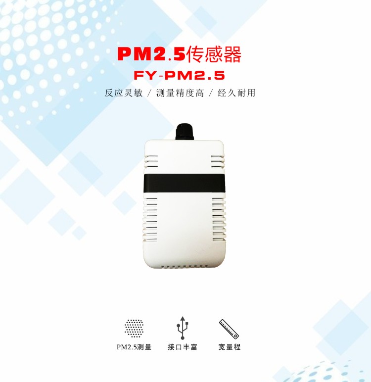 FY-PM2.5傳感器可監測小到0.03um的顆粒,相對準確的反映當地的PM2.5的值。測量范圍可以達到0-500μg/m3,可準確可靠的在線監測空氣中塵埃粒子動態,具有操作簡單,反應靈敏度高等特點。