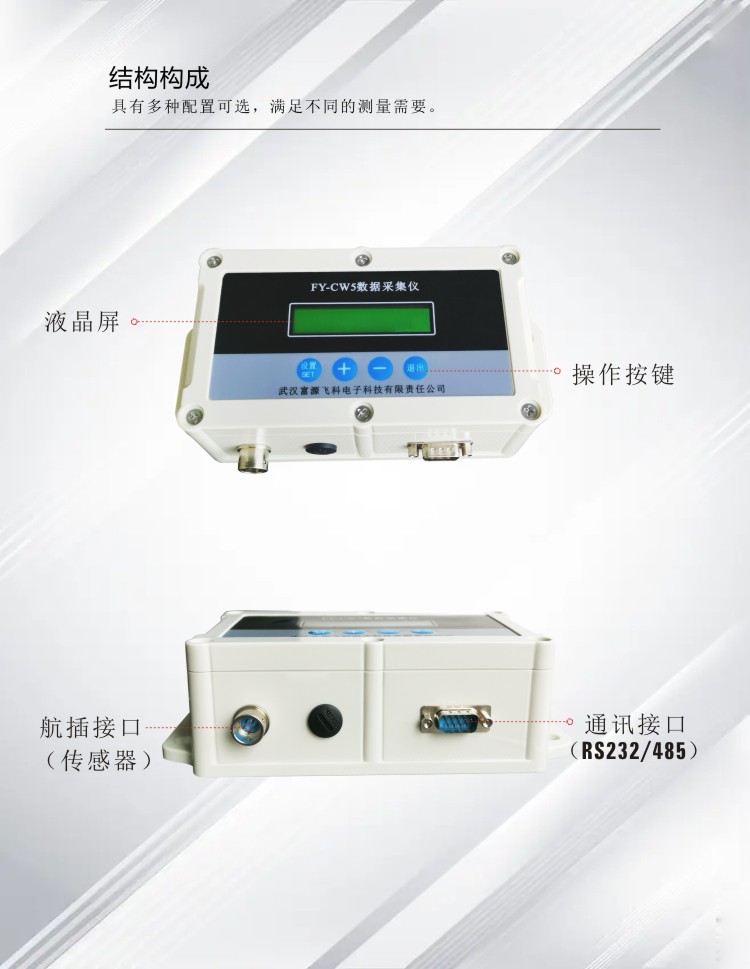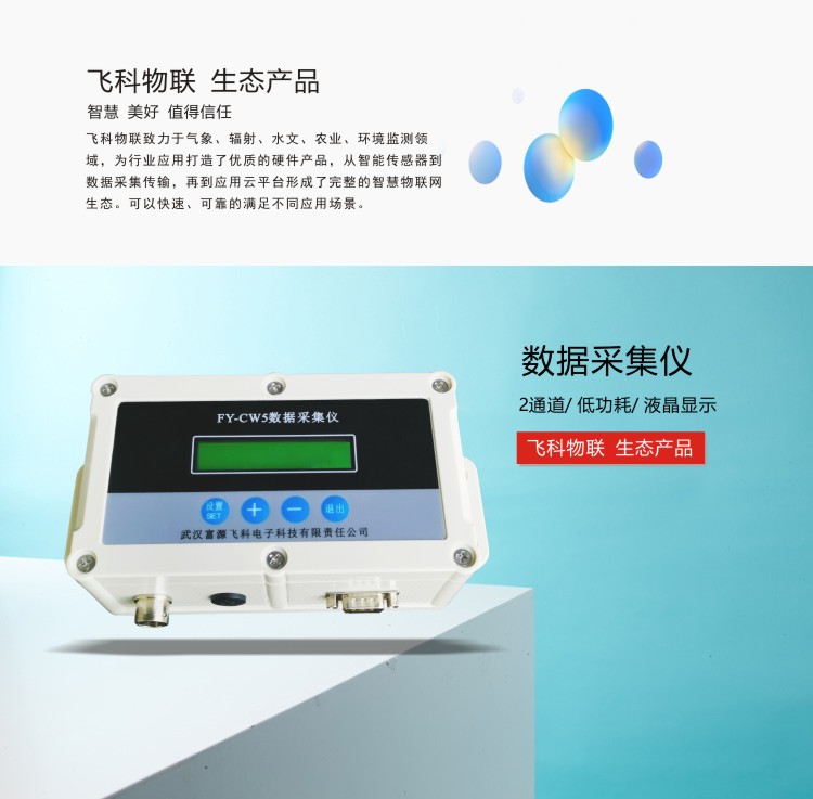 FY-CW5型二通道氣象參數采集儀是一款集氣象數據采集、存儲、傳輸和管理于一體的氣象數據采集儀器。本儀器具有2路數據采集接口,可接入風速、風向、溫度、相對濕度、土溫、土濕、雨量、氣壓、蒸發、輻射等氣象氣象傳感器,氣象參數可根據需要進行配置;人性化的人機界面接口操作簡單可靠;內置大容量存儲器可存儲一年以上的氣象數據,并具有掉電數據保存功能,還可定制U盤外部數據存儲器,實現數據的海量存儲;具備RS232、RS485等多種通訊接口實現數據遠傳,開放式通訊協議,方便用戶實現系統集成或二次開發。