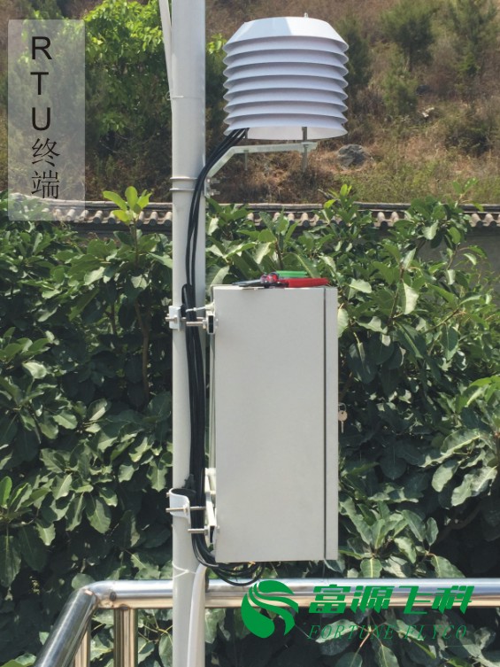 武漢富源飛科公司為雙廊污水處理廠建成的遙感氣象站包含環境傳感監測、地理位置信息監測、無線通訊、數據共享服務器、終端平臺五部分。環境傳感器可對現場的風速、風向、溫度、濕度、氣壓、輻射、雨量、二氧化碳等生態因子進行實時在線監測。地理位置信息由GPS模塊測量,可獲取現場經緯度及海拔高度。RTU數據終端對數據進行分析處理后,通過GPRS無線傳輸網絡,以1分鐘每次的頻率將數據實時傳輸到遠程服務器軟件平臺,軟件可對數據進行分析統計。用戶可通過電腦、平板或其他手持終端登錄服務器發布的地址產看氣象站實時及歷史數據。