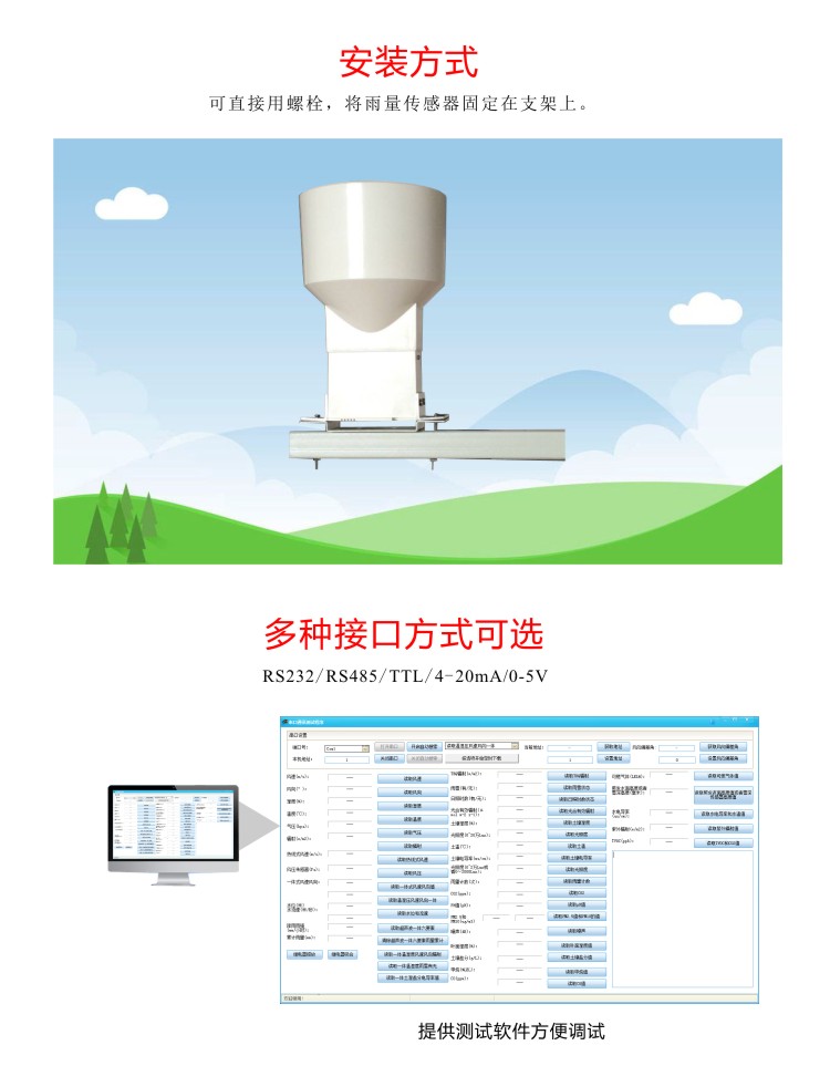 準確度:±4%(室內靜態測試,雨強為2mm/min)
