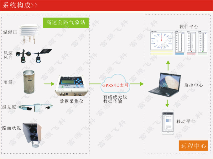 FY-EW100型高速公路氣象站,是專門針對高速公路沿線環境監測設計的自動氣象站。系統可對高速公路沿線的風向、風速、大氣壓力、氣溫、濕度、雨量、能見度、路面狀況等進行自動監測,并將監測信息及時傳送到監控中心,供交通管制系統參考。在惡劣或極端氣象條件下能及時發出警示信息,以多種方式告知管理人員和駕駛員,以提高高速公路的安全行車水平。支架采用鍍鋅管材質設計,耐腐蝕,安裝簡單。系統采用全戶外設計,免維護,自動觀測,性能穩定可靠。