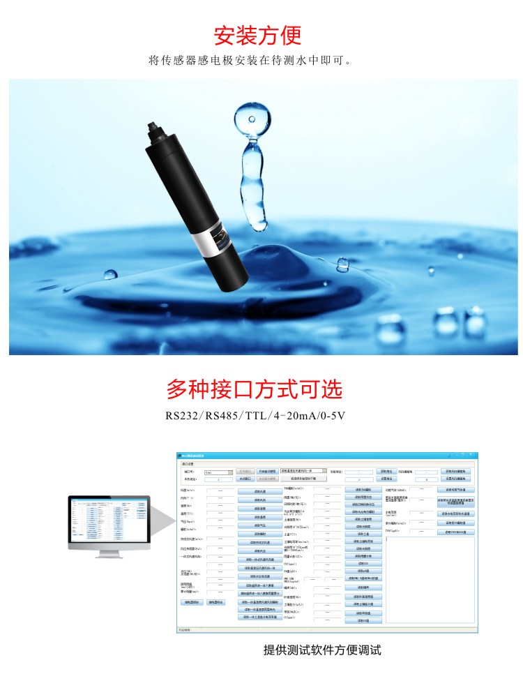 ● 尺寸小巧,安裝更為便捷,可在線不間斷進行水質監測