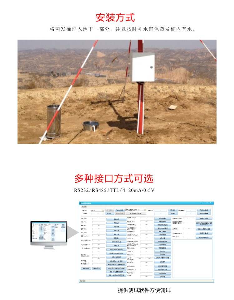 蒸發傳感器由液位傳感器和增發皿構成。通過記錄液位傳感器每日測量液位差值變化,通過軟件處理及時,得到需要的蒸發量信息。