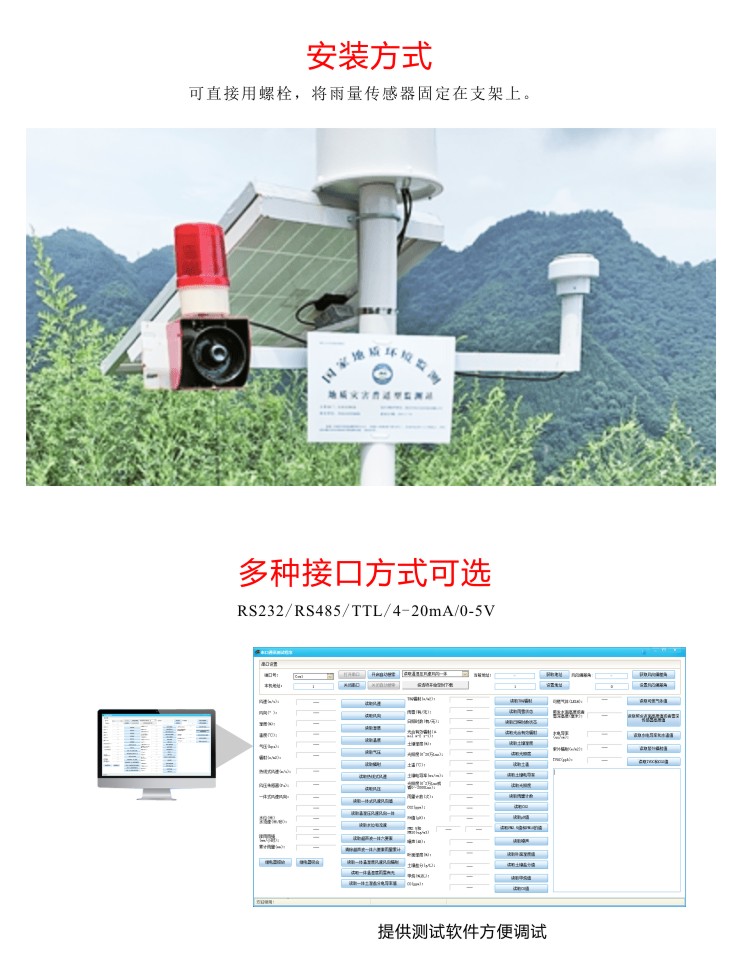 例如:FY-PY1-12V-W2:壓電式雨量傳感器, 12V供電,RS485輸出 |