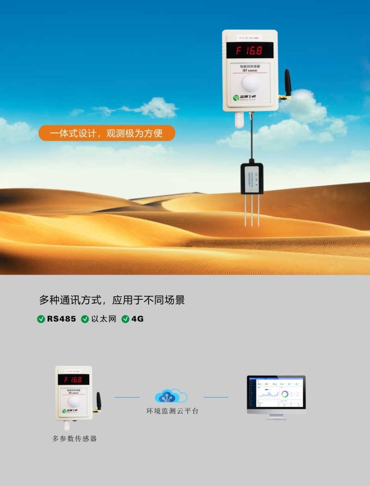 FY-JS5多合一環(huán)境監(jiān)測(cè)傳感器采用進(jìn)口高精度傳感芯片,具有測(cè)量精度高、穩(wěn)定性好等特點(diǎn)。采用高清LED數(shù)碼管顯示,可遠(yuǎn)距離觀測(cè)實(shí)時(shí)數(shù)據(jù);可對(duì)溫度、濕度、氣壓、光照、土溫、土濕、鹽分、電導(dǎo)率等進(jìn)行同步測(cè)量。采用進(jìn)口傳感元件作為感應(yīng)部件,具有測(cè)量精度高、穩(wěn)定性好等特點(diǎn),傳感器采用先進(jìn)的電路集成模塊,可根據(jù)用戶的不同需求輸出RS232、RS485、4G等通訊方式傳輸。儀器體積小巧,安裝方便且便攜,性能可靠;可廣泛應(yīng)用于氣象觀測(cè)、環(huán)境控制、農(nóng)業(yè)、工廠等諸多領(lǐng)域。