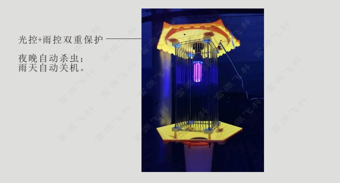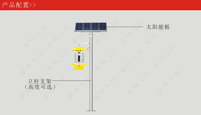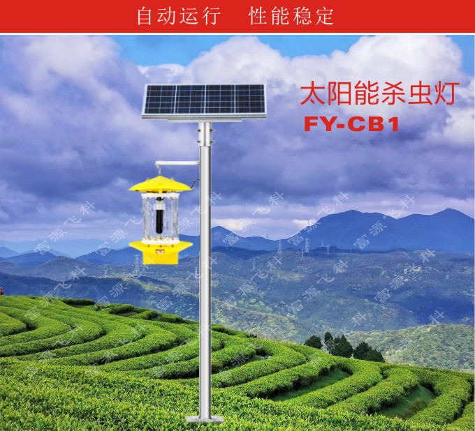FY-CB1型太陽能殺蟲燈是利用害蟲趨光性進行誘殺的一種物理防治方法。頻振式殺蟲燈是利用害蟲較強的趨光、趨波、趨色、趨性信息的特性,將光的波長、波段、波的頻率設定在特定范圍內,近距離用光、遠距離用波,加以誘到的害蟲本身產生的性信息引誘成蟲撲燈,燈外配以頻振式高壓電網觸殺,使害蟲落入燈下的接蟲袋內,達到殺滅害蟲的目的。廣泛應用與農業、林業、蔬菜、倉儲、茶葉、煙草、園林、景區、游園、公園、學校、企事業單位、大棚、葡萄園、水產養殖、畜牧養殖等。