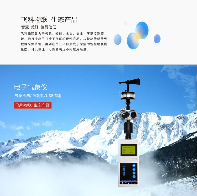FY-Q4電子氣象儀是一款攜帶方便,操作簡單,集多項氣象要素于一體的可移動式氣象觀測儀器。系統采用精密傳感器及智能芯片,用于測量風速,風向、溫度,濕度,露點,大氣壓力,BF 薄福,風寒指數,海拔高度等數據,并可擴展GPS定位功能。內置大容量FLASH存儲芯片可存儲至少一年的氣象數據;通用USB通訊接口,使用配套的USB線纜即可將數據下載到電腦,方便用戶對氣象數據的進一步處理分析。本儀器可用于農林、環保、海洋、科學考察等領域。