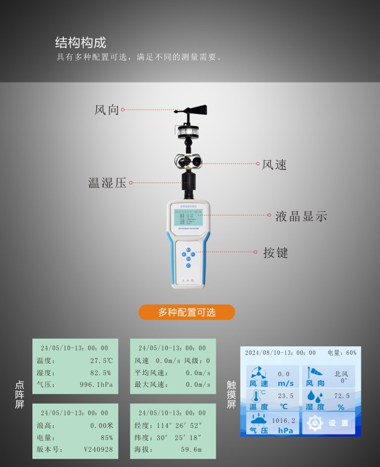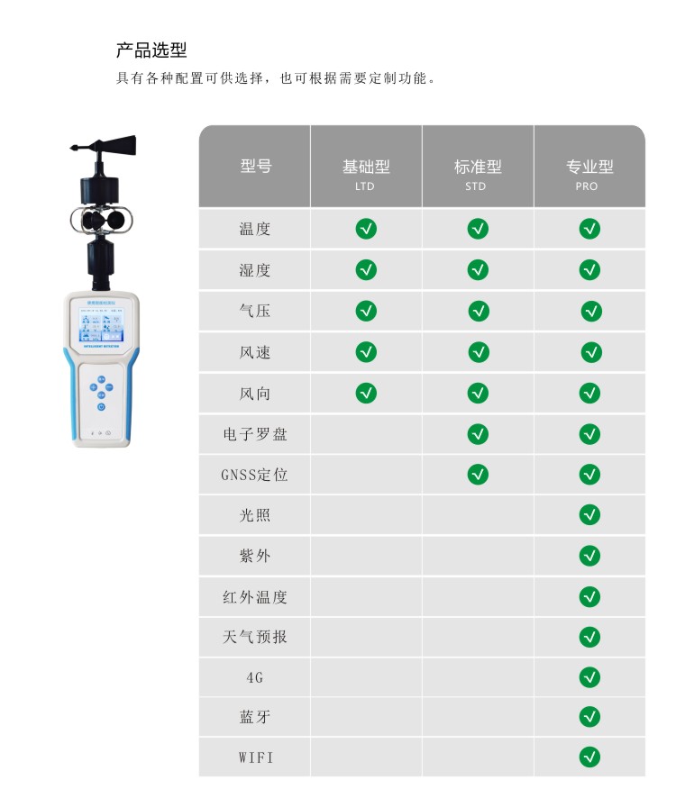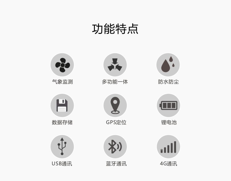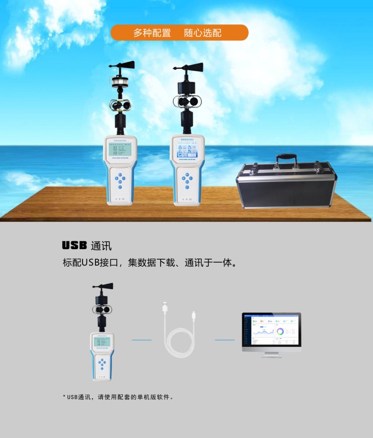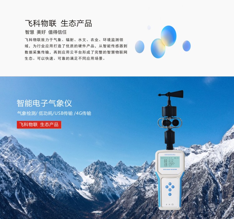 FY-Q6智能電子氣象儀是一款攜帶方便,操作簡單,集多項氣象要素于一體的可移動式氣象觀測儀器。系統采用精密傳感器及智能芯片,用于測量風速,風向、溫度,濕度,露點,大氣壓力,BF 薄福,風寒指數,海拔高度等數據,并可擴展GPS定位功能。內置大容量FLASH存儲芯片可存儲至少一年的氣象數據;通用USB通訊接口,使用配套的USB線纜即可將數據下載到電腦,方便用戶對氣象數據的進一步處理分析。還支持4G無線通訊方式,數據可傳輸至云平臺。本儀器可用于農林、環保、海洋、科學考察等領域。