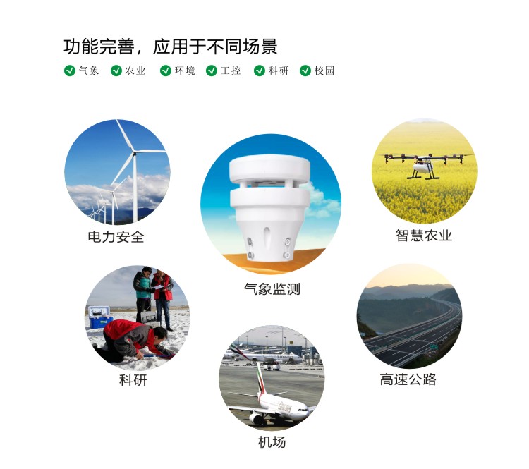 ●原理為發(fā)射連續(xù)變頻超聲波信號,通過測量相對相位來檢測風(fēng)速風(fēng)向;