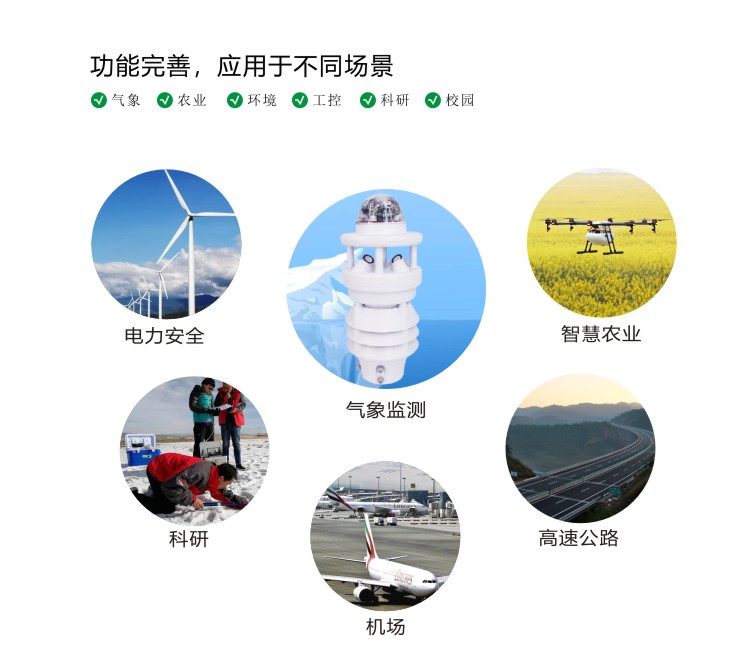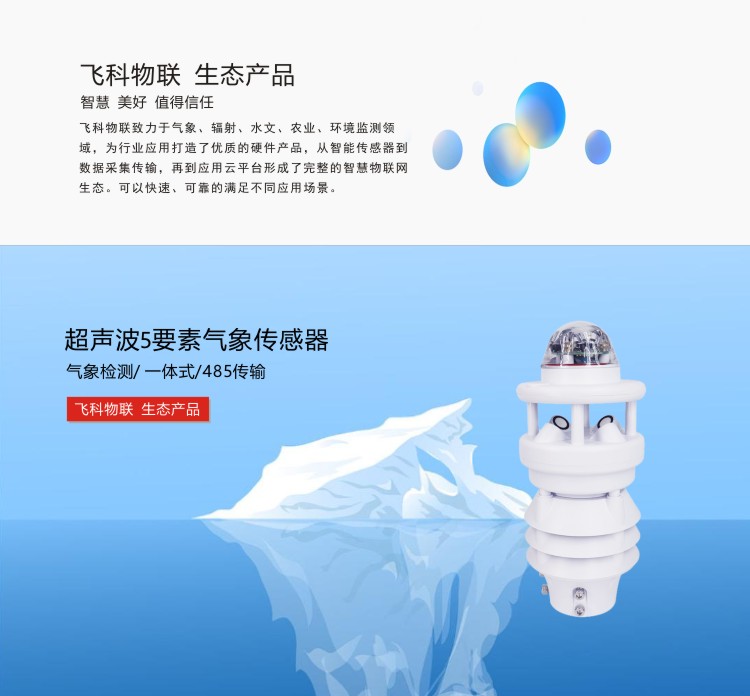 FY-QB600超聲波6要素傳感器采用超聲波原理,一體式結構可對風速、風向、溫度、濕度、氣壓、雨量等進行同步測量。采用高精度傳感元件作為感應部件,具有測量精度高、穩定性好等特點,傳感器采用先進的電路集成模塊,可根據用戶的不同需求輸出RS232、RS485、4G等通訊方式傳輸。儀器體積小巧,安裝方便且便攜,性能可靠;可廣泛應用于氣象觀測、環境控制、農業、工廠等諸多領域。