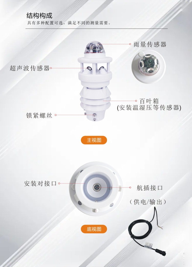 ●風速、風向、溫度、濕度、氣壓、雨量等一體式;