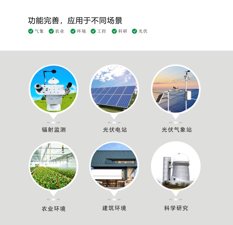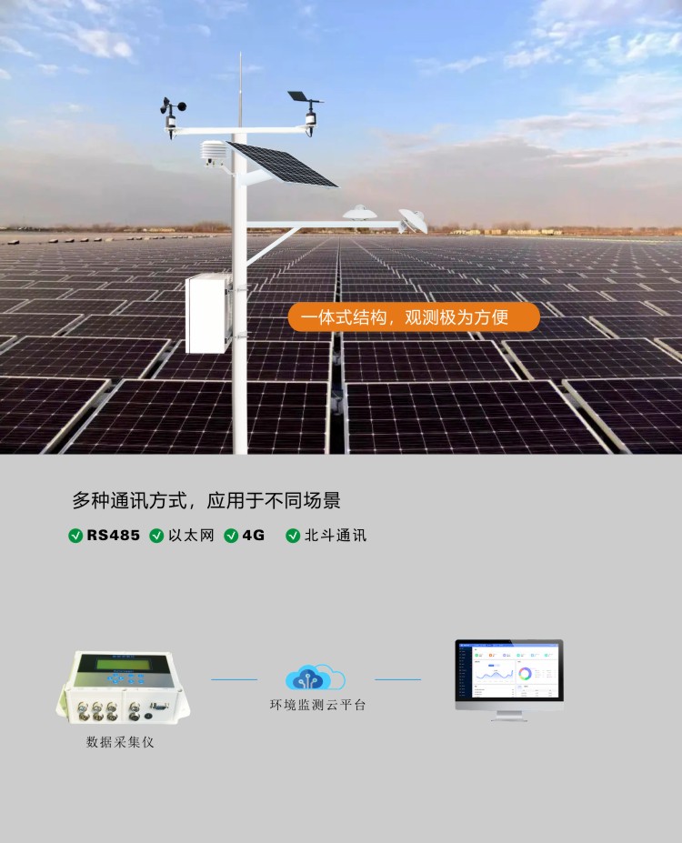 ●標準RS232/485/USB通訊功能,支持標準MODBUS通訊協議,可以通過有線 連接、局域網連接、光纖連接、GPRS移動通訊、數傳電臺、等多種通訊方式與光伏氣象站接收服務器組成氣象監測系統;