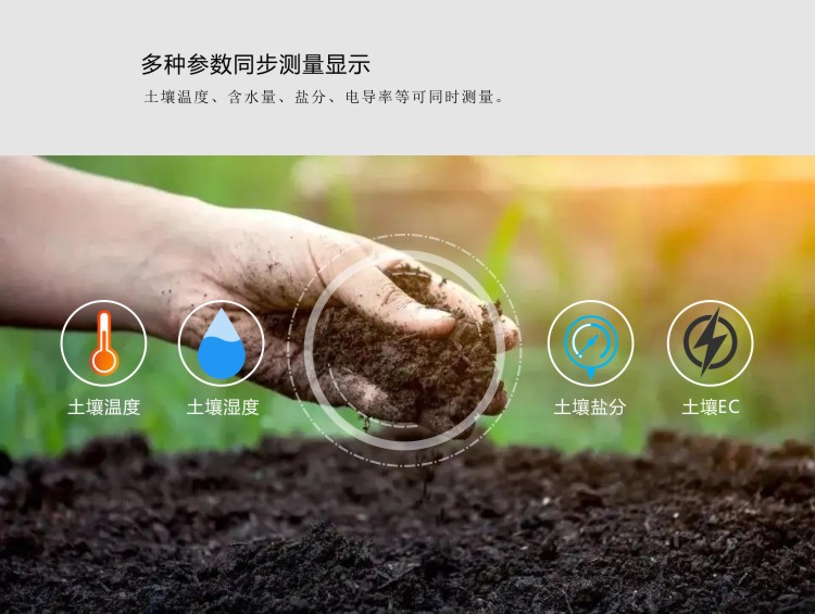 ●測量土壤溫度、土壤水分、土壤鹽分、土壤電導率、PH等數據;